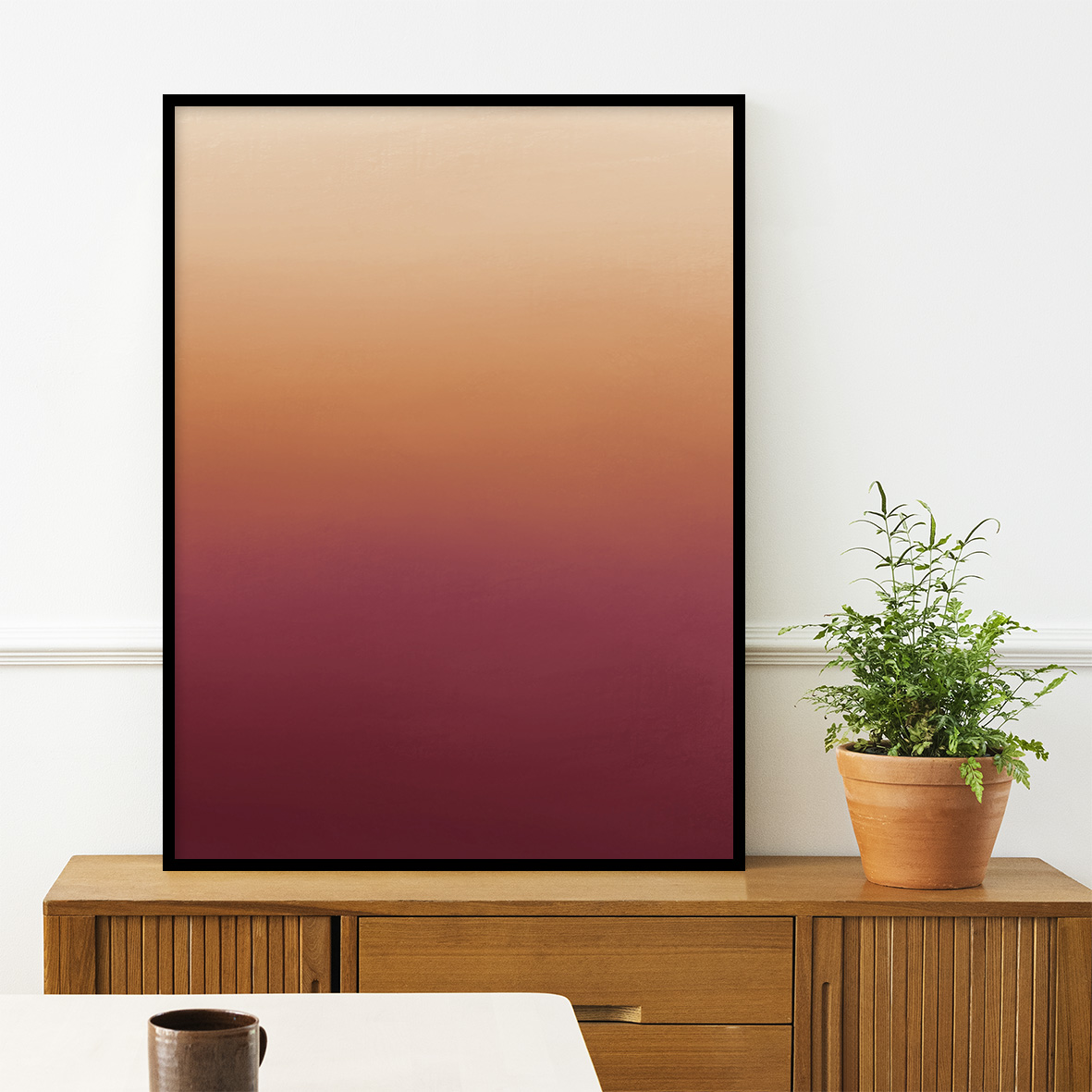 Esta simulação foi feita pela Di Quadri em ambientes fictícios e serve de inspiração. Se você gostou dessa imagem, saiba que pode escolher a cor da moldura, o tipo de impressão e o tamanho do quadro. Para uma melhor visualização das suas opções, visite nosso site.